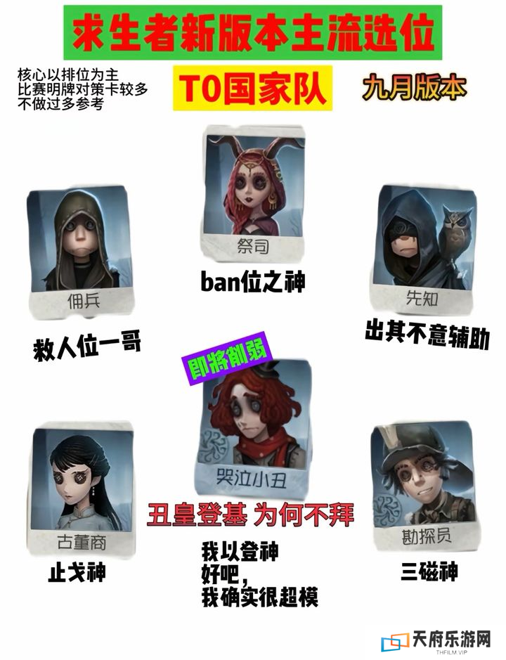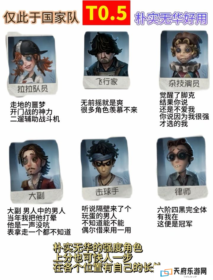 今日带来的是《第五人格》手游中各角色的求生强度排行,新版本的主流选位参考本榜单即可,榜单从T0开始到T3依次进行排行。