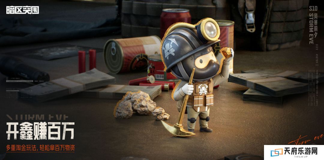 新版本活动前瞻,整个十月,推出暗区淘金季活动。参与淘金行,进行委托获取矿藏币,可兑换淘金者系列收藏品;先锋们完成每日登录以及存活任务即可最多获得18把金矿镐;而参与限时玩法则最多可以获得12把金矿镐,消耗金矿镐即可在24个藏宝地之中选择其一挖宝淘金,万能钥匙、万能门禁卡、大额柯恩币等总计超百万价值物资正等着先锋挖掘!